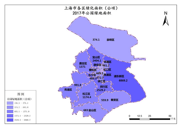 上海市2017年公园绿地面积
