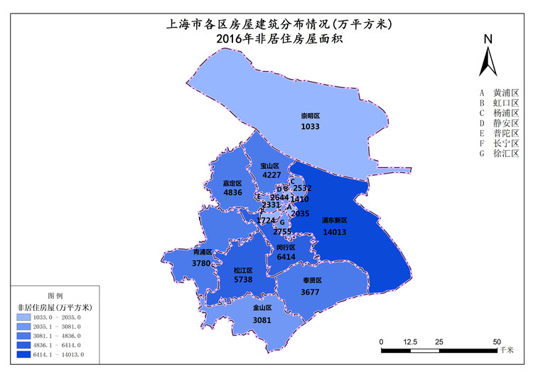 上海市2016年非居住房屋面积(各区房屋建筑分布情况)