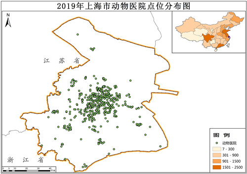 2019年上海市动物医院点位数据共包含上海市内607个动物医院相关的位置点数据,记录的相关属性包括:编号、中英文名称、所属省、所属市、所属县以及部分有比较详细的街道记录。2019年上海市动物医院点位数据格式为shapefile,类型为point,地理坐标系采用GCS_WGS_1984坐标系。