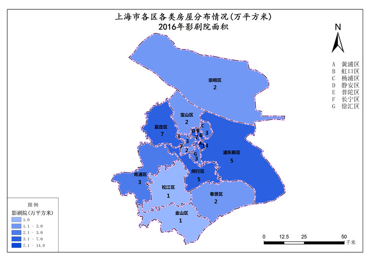 上海市2016年影剧院面积(各区各类房屋分布情况)