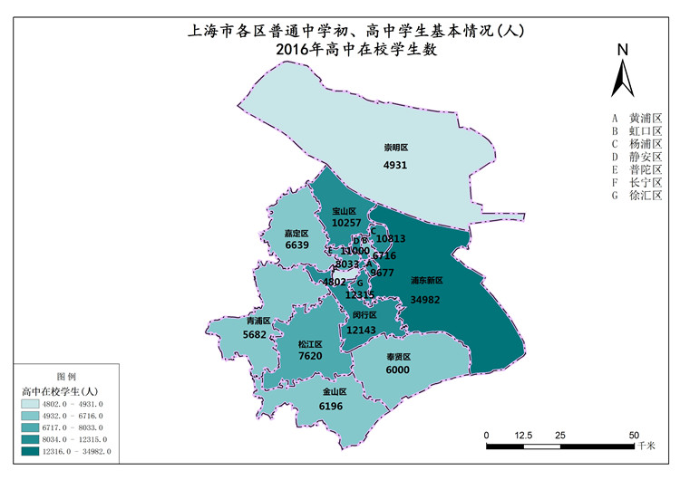 上海市2016年高中在校学生数(各区普通中学初、高中学生基本情况)