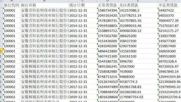 5.银行信贷资产结构:银行代码 银行名称 统计日期 正常类贷款 关注类贷款 不良类贷款